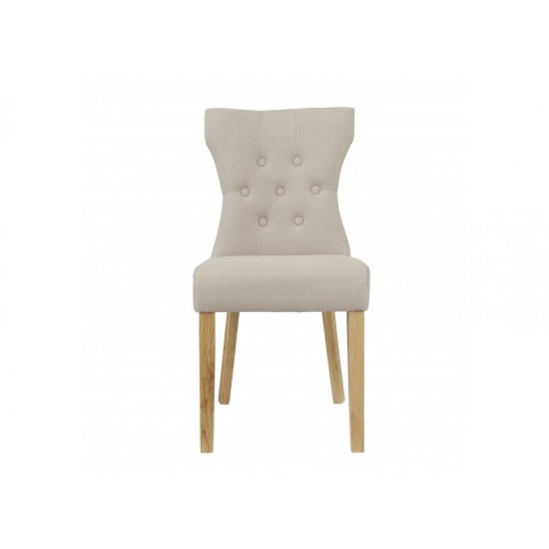 This quality chair has been upholstered in a soft and sumptuous fabric with button detailing. It has a high back with a subtle curved design, while the cushioned seat offers additional comfort.